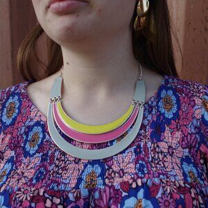 Beautiful Three Round Colored Half Circle Yellow & Pink Bib Necklace
