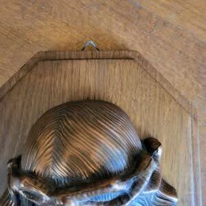 Beautiful vintage rendition (cast with Copper plated overlay) oak wall plaque of Jesus with the Crown of Thorns. Original hardware. An amazing piece. Beautiful gift during uncertain times.