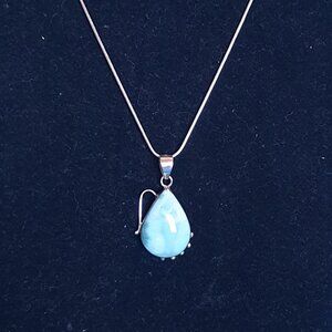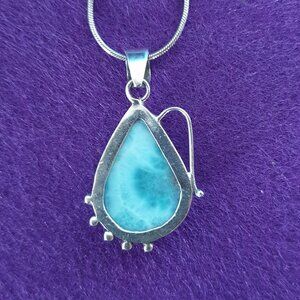Beautiful Vintage 925 Sterling Silver Natural Larimar Statement Pendant Necklace