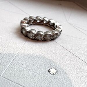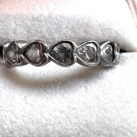 ✨ Beautiful Vintage .925 Sterling Silver and Pave Crystal Heart Eternity Ring
