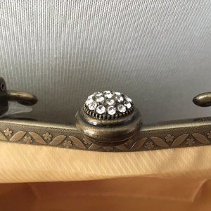 * Strap: 1 short ornate metal handle and long metal chain strap(Chain hides away)
