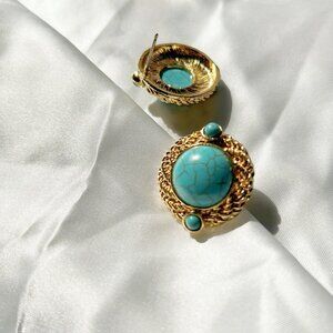 Beautiful Vintage French Designer stud Earrings Turquoise stone Zircon women