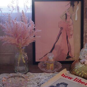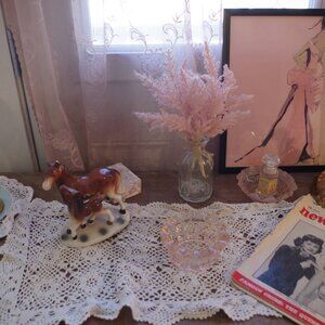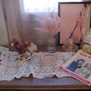 Beautiful vintage light pink cherry blossom bowl By Jeannette.In great condition, lovely midcentury bowl. Great candy dish or vanity. The dish is 5 inches across wide by 2 inches tall .early period of 1936 to 1947.