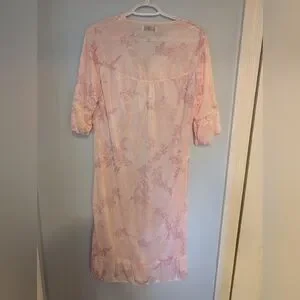Stunning pink vintage night robe. Lace detailing, tie at the top. No size tag but looks like it could fit a small-large.