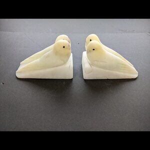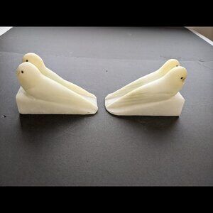Beautiful Vintage Pair of White Marble Doves / Birds Bookends