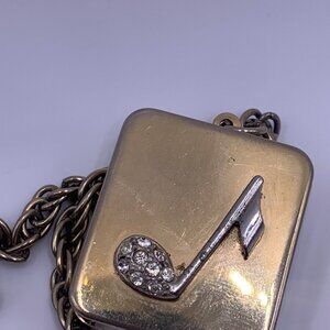 Beautiful Vintage Swiss Reuge Music Box Necklace / Charm Necklace with Music Note and Faux Diamond Rhinestone - Working Condition
