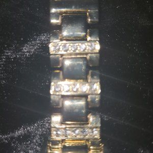 Encrusted with rhinestone around face and on band. Vintage Swiss movement ladies Gold plated timepiece