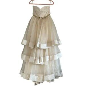 Gorgeous feminine and fun. Perfect for your special day. Dress is nwot but there is a slight smudge from storage and would benefit from dry cleaning prior to wear.