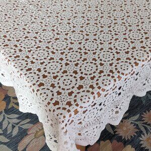 Beautiful Vintage White Lace Tablecloth Rectangle 48"x 70" Scalloped Edges
