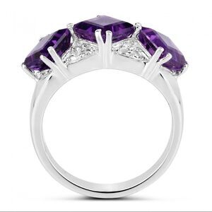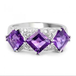 Beautiful Womens White Gold Rhodium Over Sterling Silver Amethyst and Topaz Size 7 Designer Ring