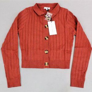 Beautiful Wide-Ribbed Rust-Color Crop Cardigan NWT Size S