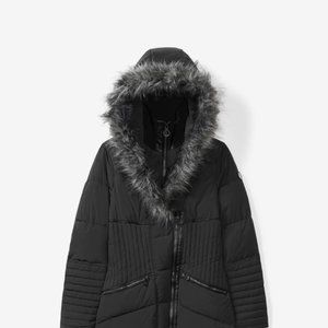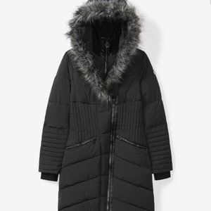 Women's medium size black winter jacket never worn brand new. The jacket is a true fit to size. It is made with all vegan materials.Discounted shipping.