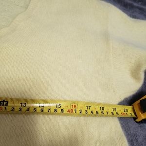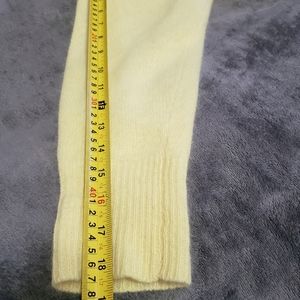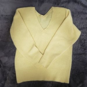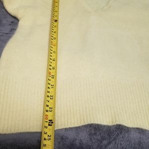 Soft yellow wool/angora blend v-neck sweater. Used in excellent pre loved condition. No size tag. I say its a medium size.