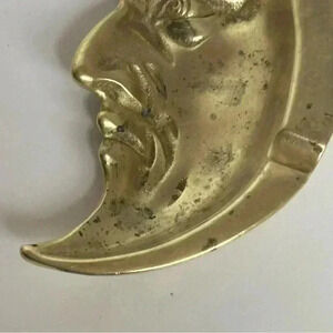 Beautiful antique brass crescent moon / man in the moon celestial ashtray