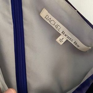 Beautiful print of mauve, pink and navy in a silk off one shoulder dress by RACHEL. Perfect for a summer wedding.