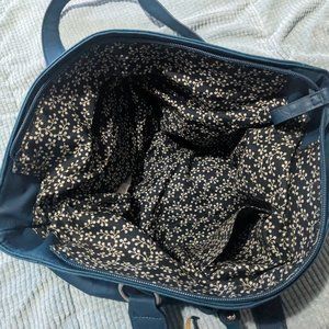 Straps are 29 inches. Has front pocket, back pocket inside zipper pocket, and two other pockets.