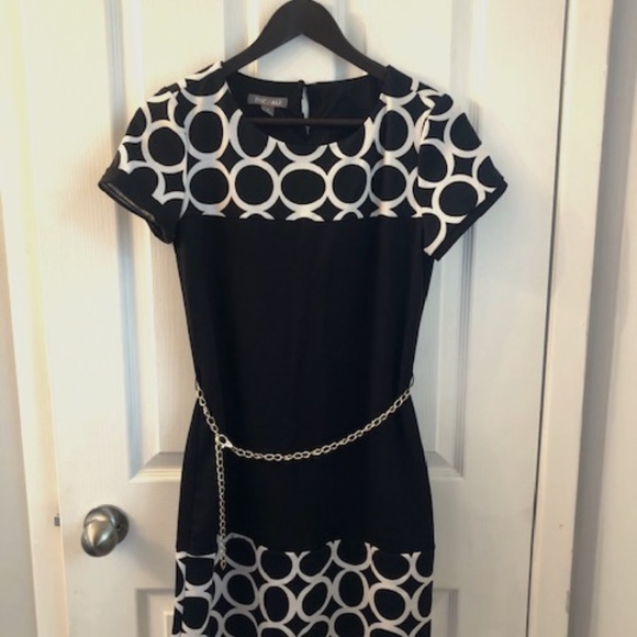 Beautiful black and white dress, worn once in excellent condition. Size 4. 97% polyester, 3% spandex.