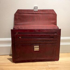 Beautiful burgundy, hand tooled leather mini briefcase