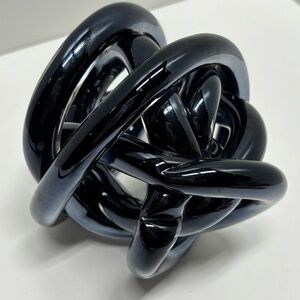 Beautiful dark chrome glass art infinity knot. This intricately crafted piece has a slightly iridescent chromed finish. It is in very good preowned condition with no chips.