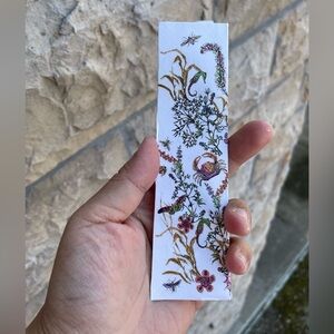 I cut out and framed this beautiful Dior gift bag with the star charm. It’s a stunning work of art with iridescent metallic colours. I used the side of the bag to make the double sided bookmark with authentic Dior ribbon.