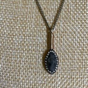 Beautiful gold necklace with marquise cut black obsidian pendant & white stones