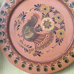 very nice hand-painted wooden plate wall hangers with flowers and birds.