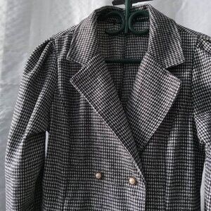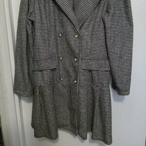 Beautiful houndstooth coat with a skirt at the back, double row of buttons...