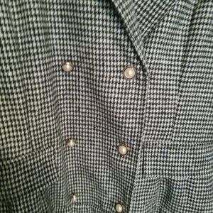Beautiful houndstooth coat with a skirt at the back and double row of buttons, asymmetrical collar, and unique back design.
