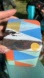 Stylish tin box by Fossil. Features geometric patterns in blue, orange, and yellow. A nadir you will find a brand new solar powered ladies crystal and stainless steel adjustable watch.