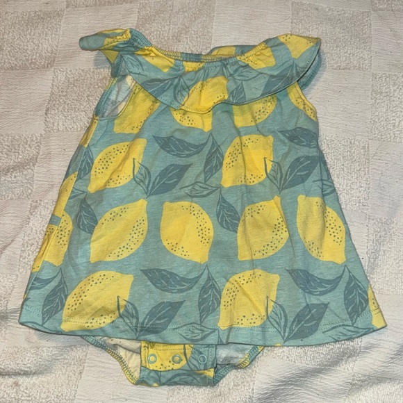 Beautiful lemon shirt with snaps at the bottom, sort of a romper