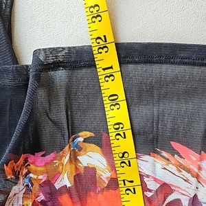 Robert Kitchen duster - black with a colorful floral design on the bottom half. Great over a sleeveless dress or with pants. Size S