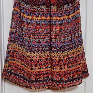 Beautiful colours, sleeveless dress that falls just below the knees.