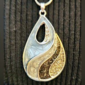 Beautiful teardrop-shaped pendant. Made with different Shades of Resin. On a Silvertone Necklace