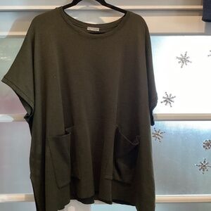 NAYA vest tunic in a gorgeous deep olive green. Drop shoulder styling with side slits.