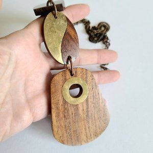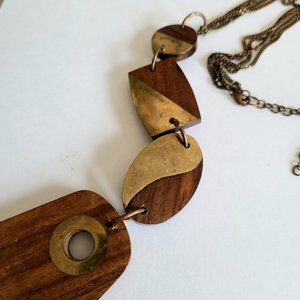 Beautiful vintage bohemian wood and brass chunky pendant/necklace,