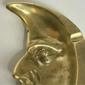 Beautiful vintage brass crescent moon / man in the moon celestial ashtray