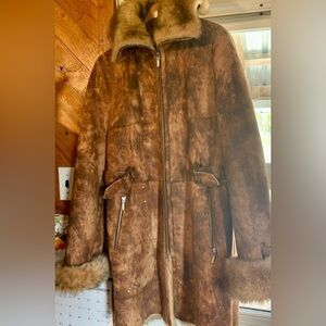 This coat is super warm for those cold winter days . Beautiful leather coat with warm fur lining .