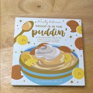 Beauty Bakerie 'Proof is in the Puddin' eyeshadow palette with a playful design. Features a mix of warm and neutral shades.