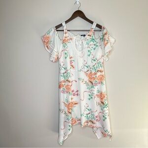 Beauty and the Beast Floral Dress Cold Shoulder Asymmetrical Hem Medium