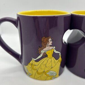 Beautiful purple and yellow set of Beautu and the Beast mugs. Make a heart shape "hole" when put together. Never used.Great for Disney collectors and Beauty and the Beast fans.
