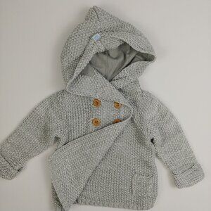 Beba Bean Heather Gray Knit Double-Breasted Hooded Jacket Size 6-12 Months