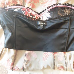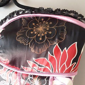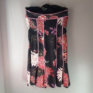 Bebe 100% Silk Black Pink Strapless Floral Flowy Dress Size Large