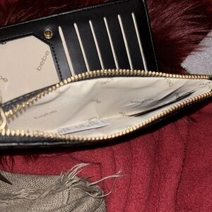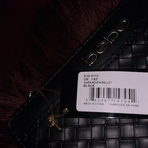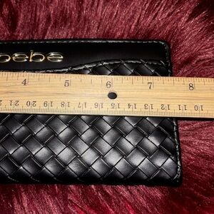 🖤⭐️Stylish black woven wallet by Bebe. Sleek and elegant design. Faux leather zipper pull logo long wooven wallet. New with tags approx measurements photographed