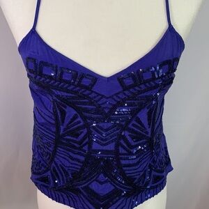Bebe Blue Cropped Sequin Chiffon Silk Tank Top