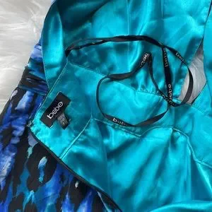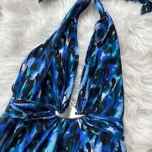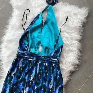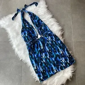 Bebe Blue Turquoise Leopard Halter Mini Dress. Zip up back. Size small