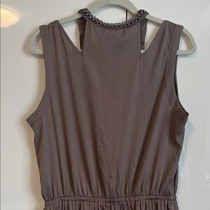 Bebe Dark Taupe Brown Sleeveless Jumpsuit Chain Detail