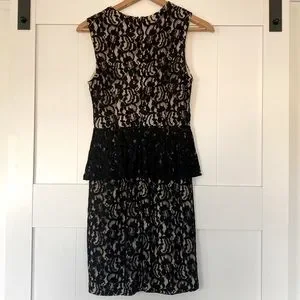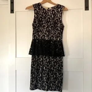 Excellent condition. Size 4 Bebe black and white peplum dress. Super cute, sexy, and comfortable!
