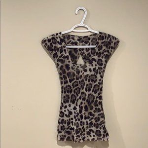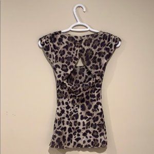 EUC Bebe stretchy leopard-print mesh shirt with keyhole back in women’s size extra small.