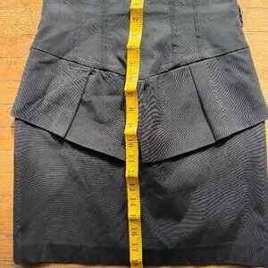 Great basic black mini skirt with a bit of flair. The waist features a pleated ruffle detail that brings some interest to the skirt.