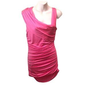 Bebe NEW Hot Pink Ruched Draped Tank Top Silky Stretch Bodycon Slimming Tank